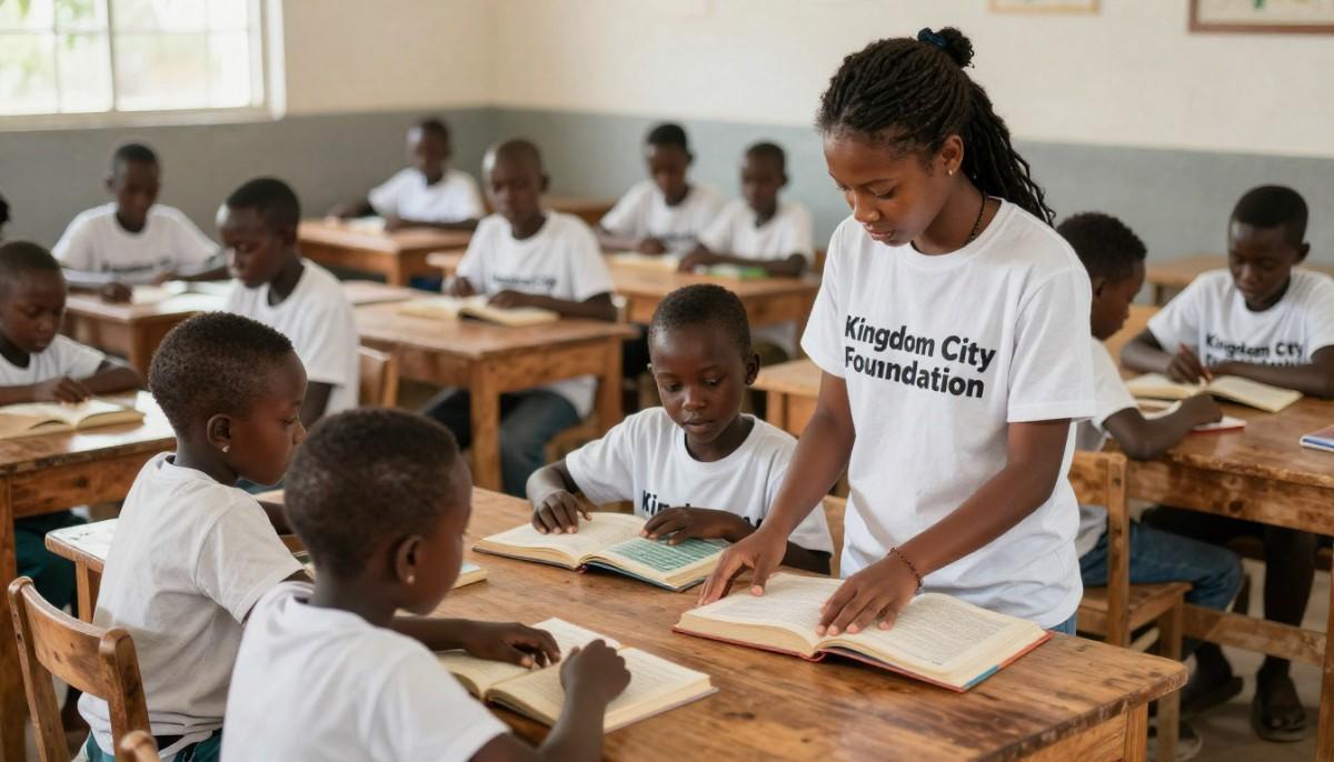 - Education: Our Educational program have Access to quality schooling and tutoring support. we believe that education is the key to breaking the cycle of poverty and unlocking a brighter future for every child. Our Education Program is designed to provide children and young people with access to quality learning opportunities that empower them to dream big and achieve their goals. We support formal education by covering school fees, uniforms, books, and learning materials for children who might otherwise be unable to attend school. Beyond the classroom, we also offer tutorials, mentorship programs, and scholarships to help them excel academically and personally. For older youths, we provide skills training, vocational education, and career guidance, equipping them with practical knowledge to become self-reliant and productive members of society. At Kingdom Church Foundation, we see education not just as a right, but as a pathway to hope, transformation, and lasting change, empowering every child to rise above their circumstances and build a future filled with promise.
